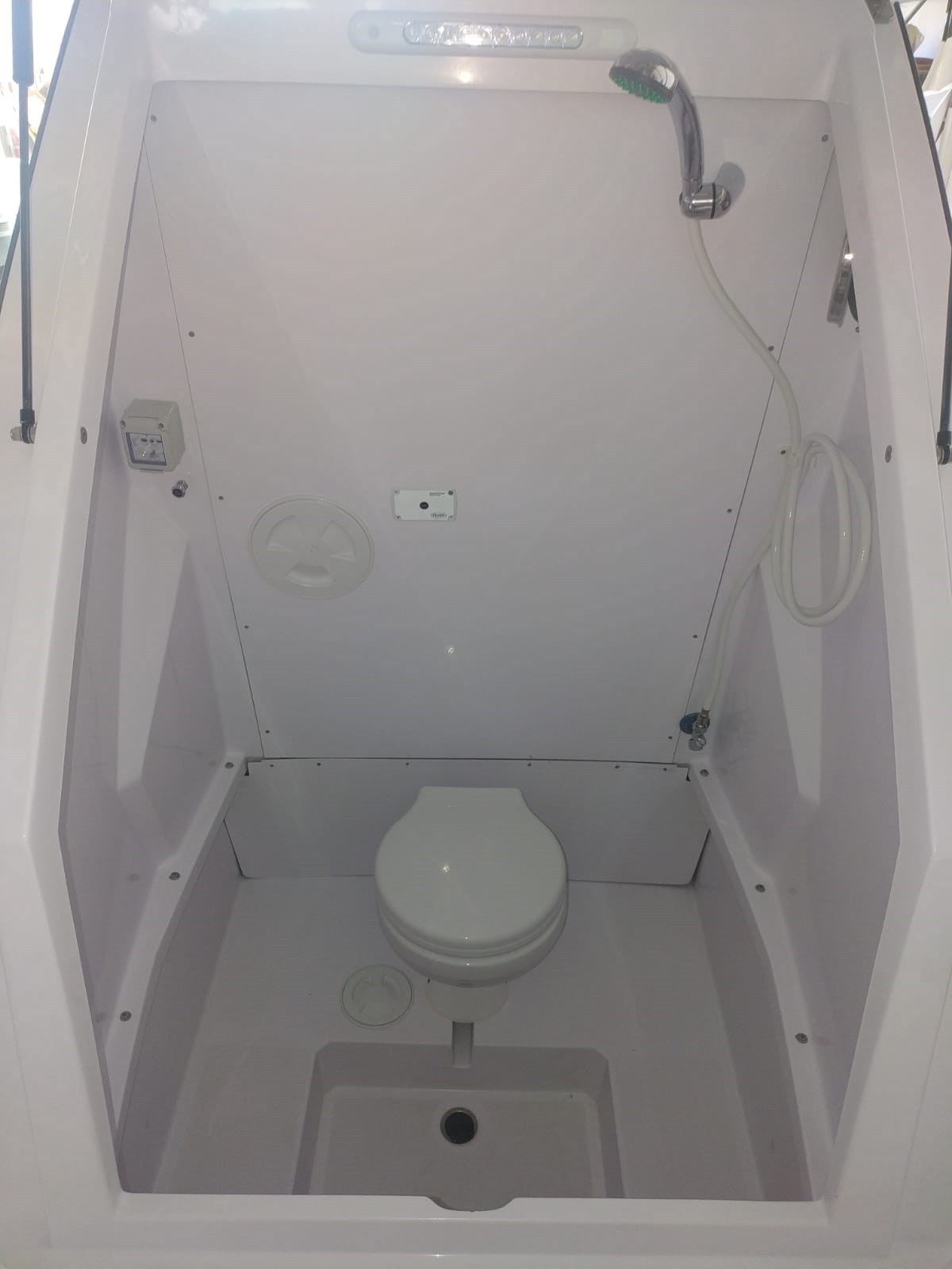 TUTTO COMPRESO nel prezzo: rollbar in vetroresina con tendalino completo, frigorifero in acciaio inox incassato in console, pavimentazioni complete in EVA colore a scelta, luci di cortesia a led, tubolare in versione bicolore colori a scelta, cuscinerie colore a scelta, telo di ormeggio, telo copri-consolle, telo copri-seduta di guida, impianto elettrico 230V completo di caricabatteria 12V, cavo banchina, quadretto e 2 prese, impianto batterie 2, motore guoribordo Honda Marine BF350 V8 colore bianco, comando chiesuola, computer originale, elica originale, impianto Garmin con schermo cartografico 7" touchscreen veloce e trasduttore ecoscandaglio HD, mappa completa, timoneria idraulica speciale per BF350, doppia batteria con deviatore a 3 vie.