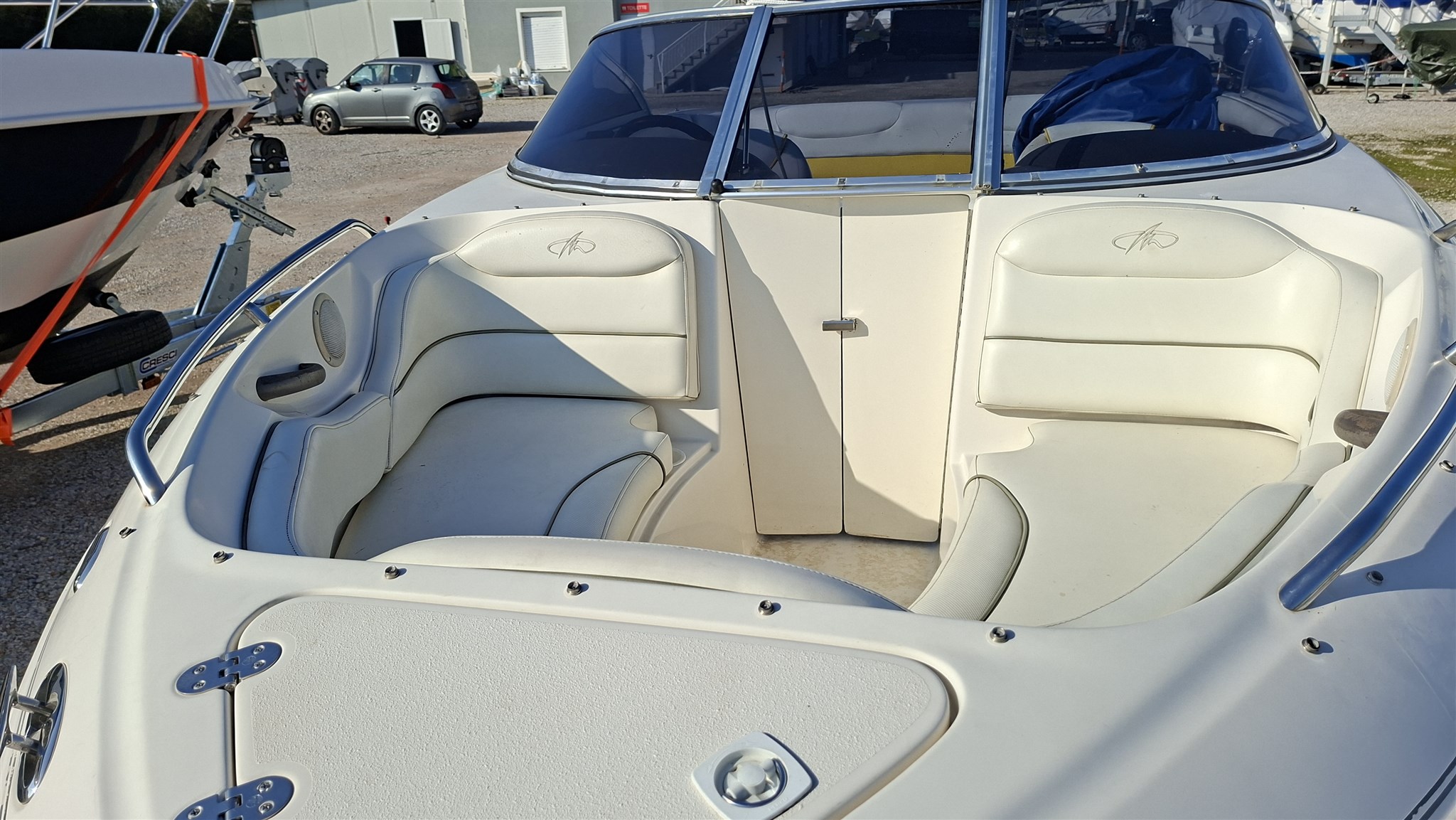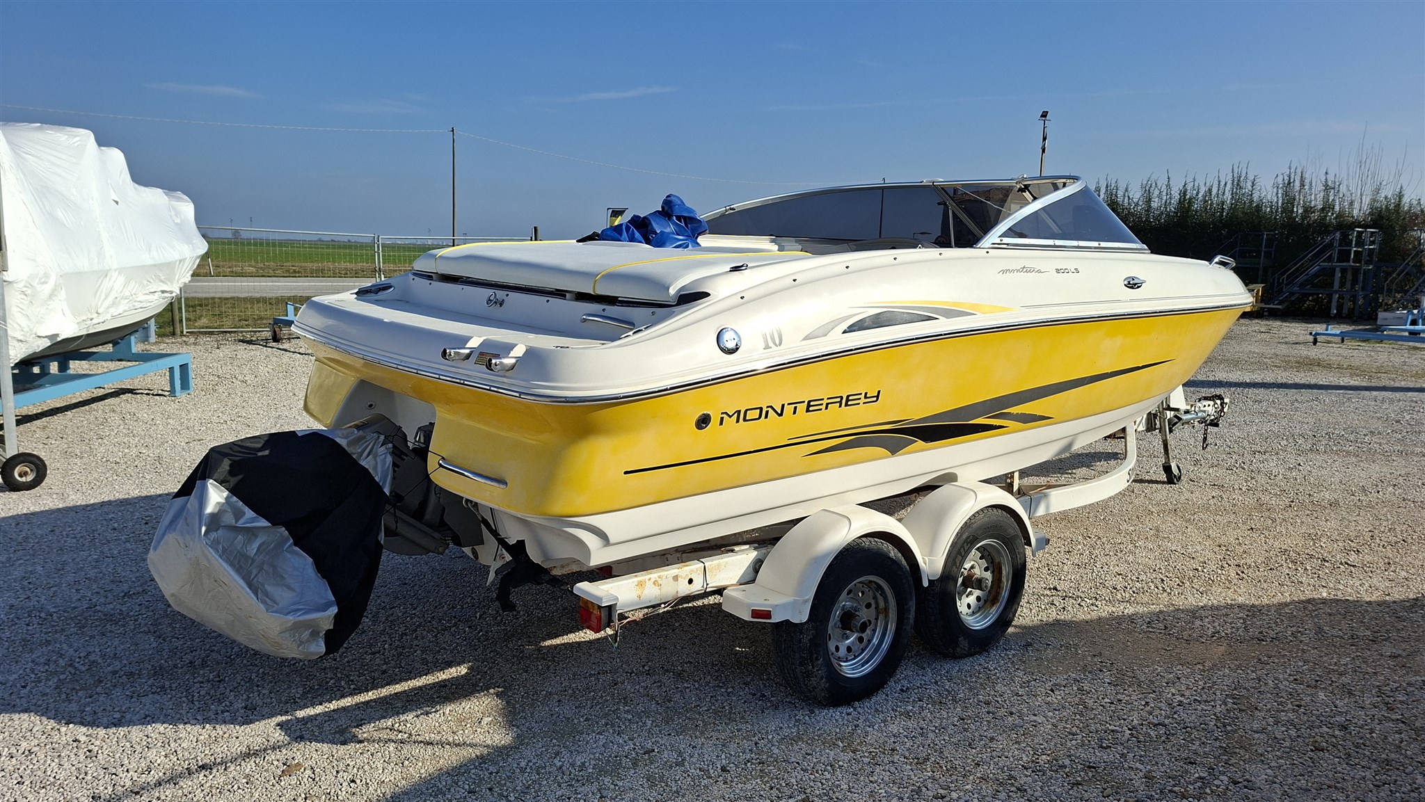 Barca Monterey 200 LS Montura del 2003 con motore efb Volvo Penta 5.0 GXI con 155 ore, usata sempre da carrello, senza antivegetativa e mai stata in acqua, barca tagliandata e funzionante a pieno, divertente, veloce. Come da foto scattate il 26/02/2026. La barca è dotata di scaletta a mare, cuscinerie complete in ottimo stato, sedili pilota e coopilota, impianto stereo, vetri e porticina perfette, salpa ancora manuale, porta bicchieri, maniglie tientibene, telo di copertura totale, telo copri motore. Barca veloce e divertente, pronta all'uso! Vendita da privato in agenzia Centro Nautico Lignano e visibile presso sede CNL. Senza antivegetativa!