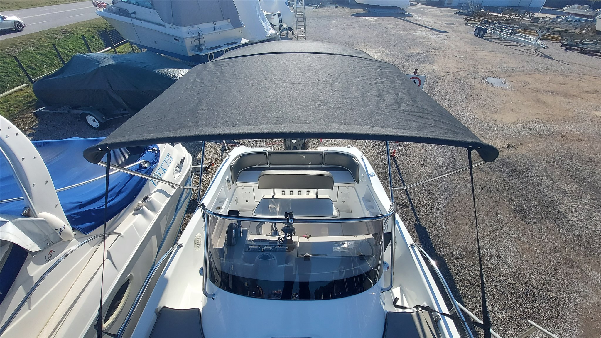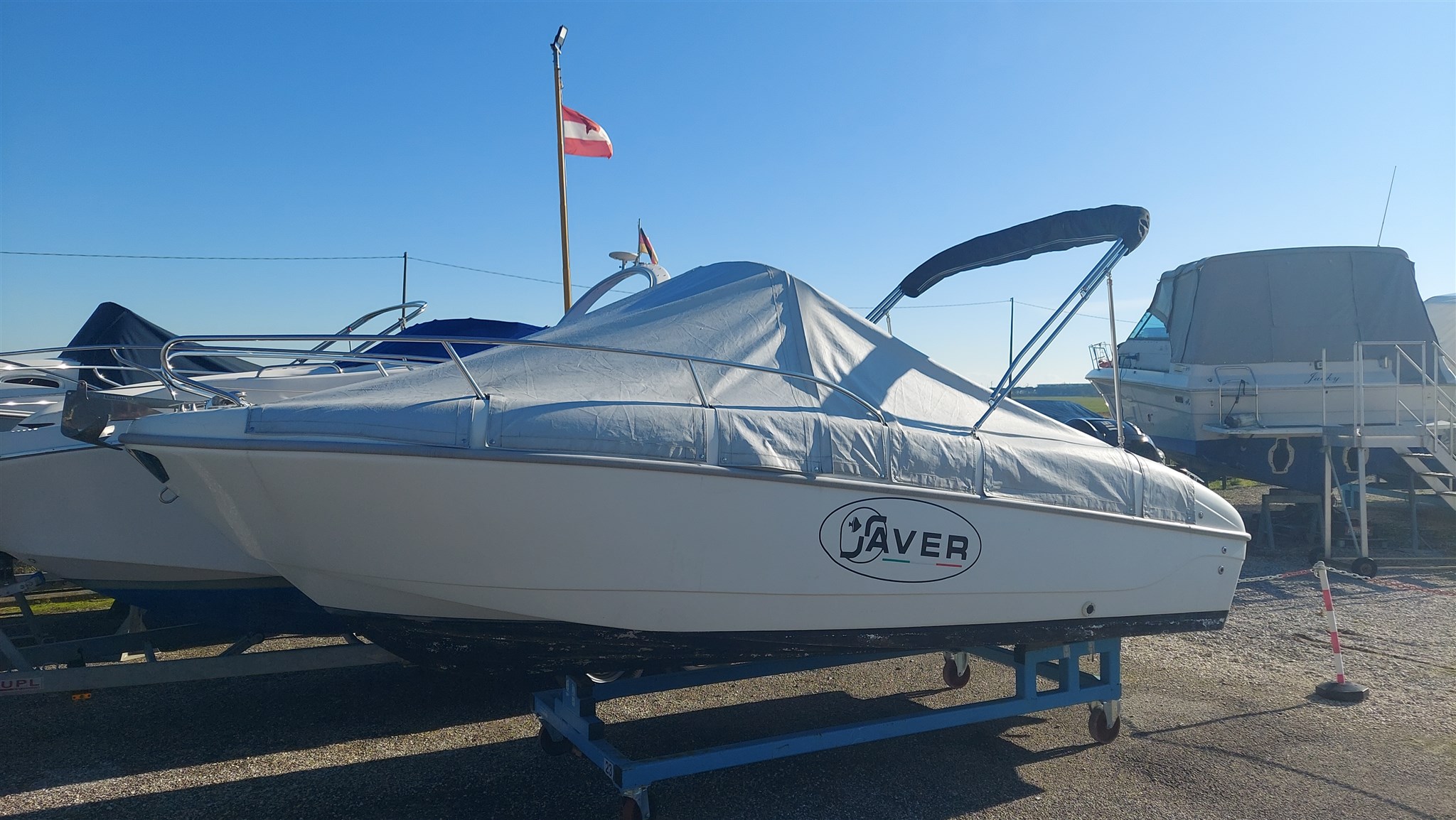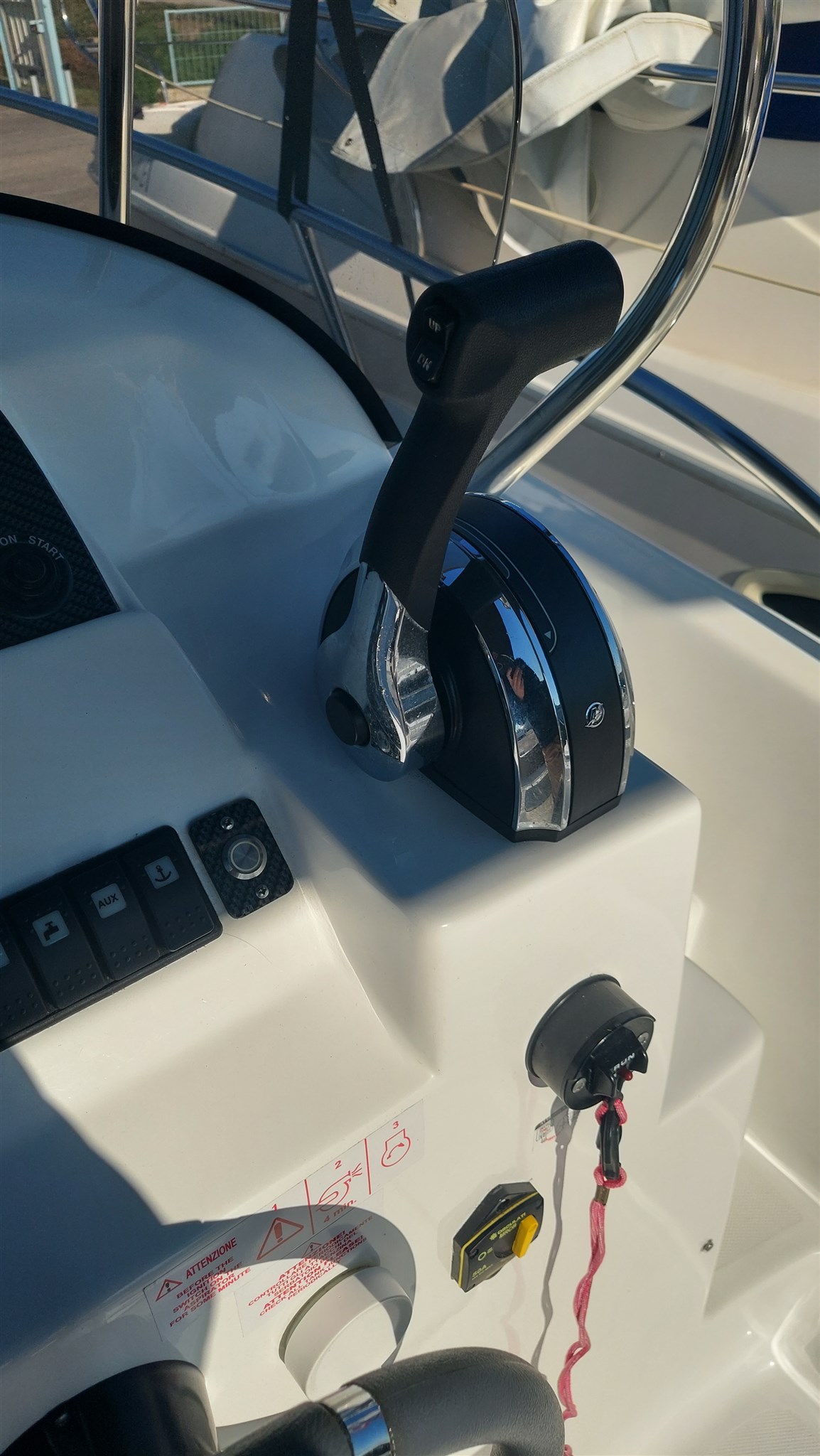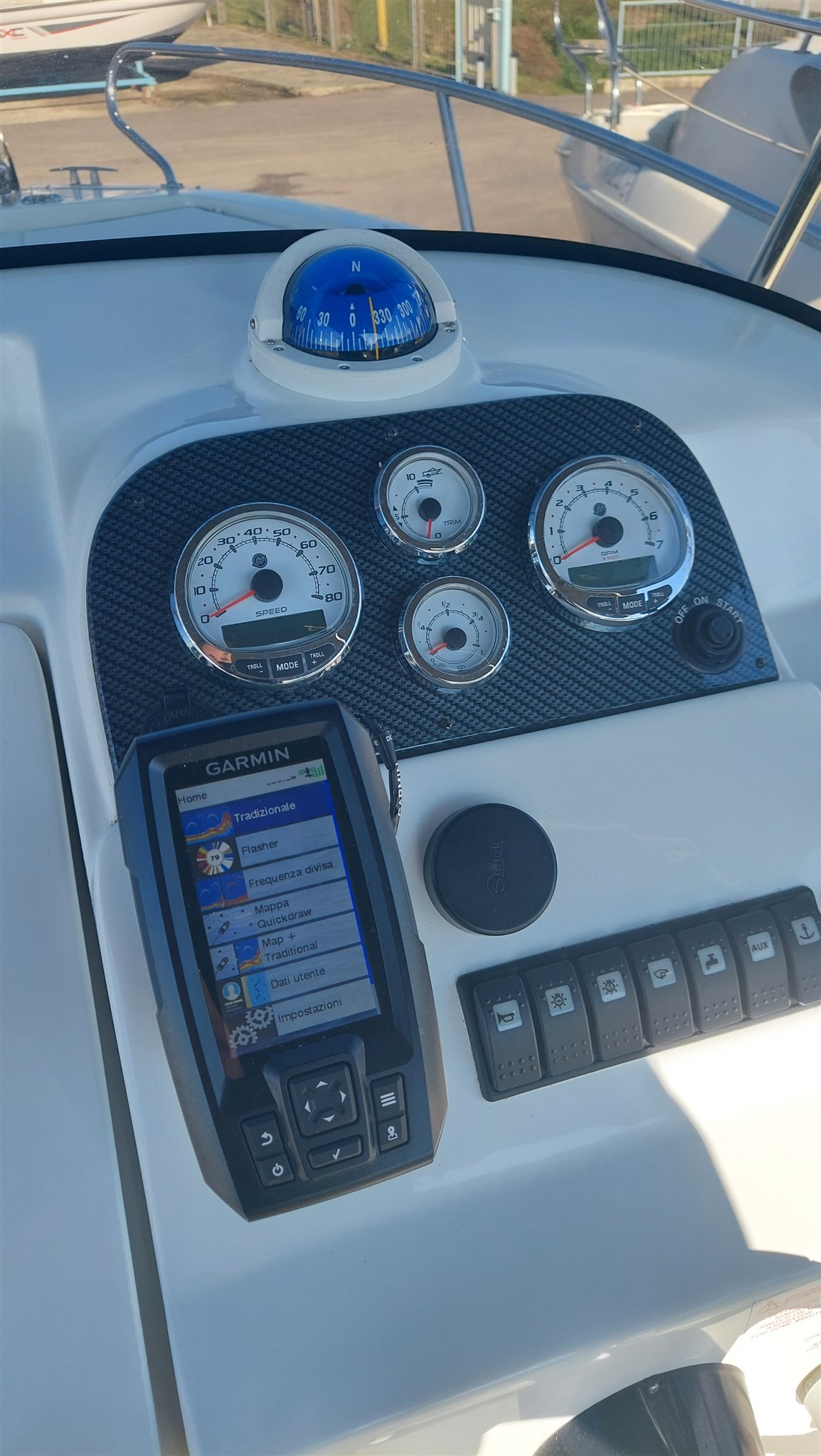 Cabina con 2 posti letto con cuscinerie complete interne perfette e profumate, zanzariera oblò, Garmin trasduttore ecoscandaglio removibile su staffa, no WC, impianto stereo con2 casse, cuscinerie esterne perfette pari al nuovo, seduta di guida apribile con ampio gavone, impianto elettrico doppia batteria 12V con scatole stagne, scaletta a mare telescopica, vasca a poppa per il pescato, porta canne (4) in acciaio, tasche laterali porta oggetti, ventilatore gavone poppa, serbatoio acqua e doccetta, luci di navigazione regolamentari, tendalino autoportante in acciaio inox con custodia (perfetto), verricello elettrico con ancora e catena e doppio comando, telo copri console, telo copertura totale con cerniera al centro, tientibene laterali in acciaio inox. Altro in visita presso nostro cantiere Centro Nautico Lignano. Info dirette 3474077005,