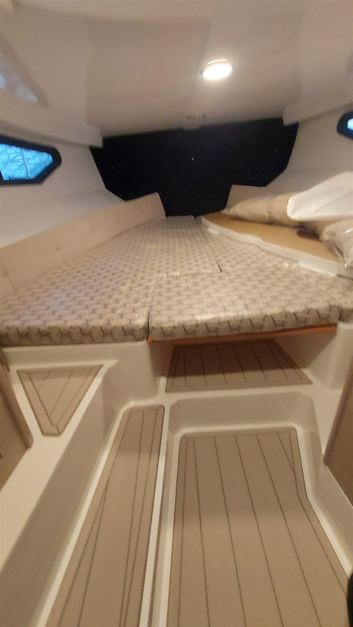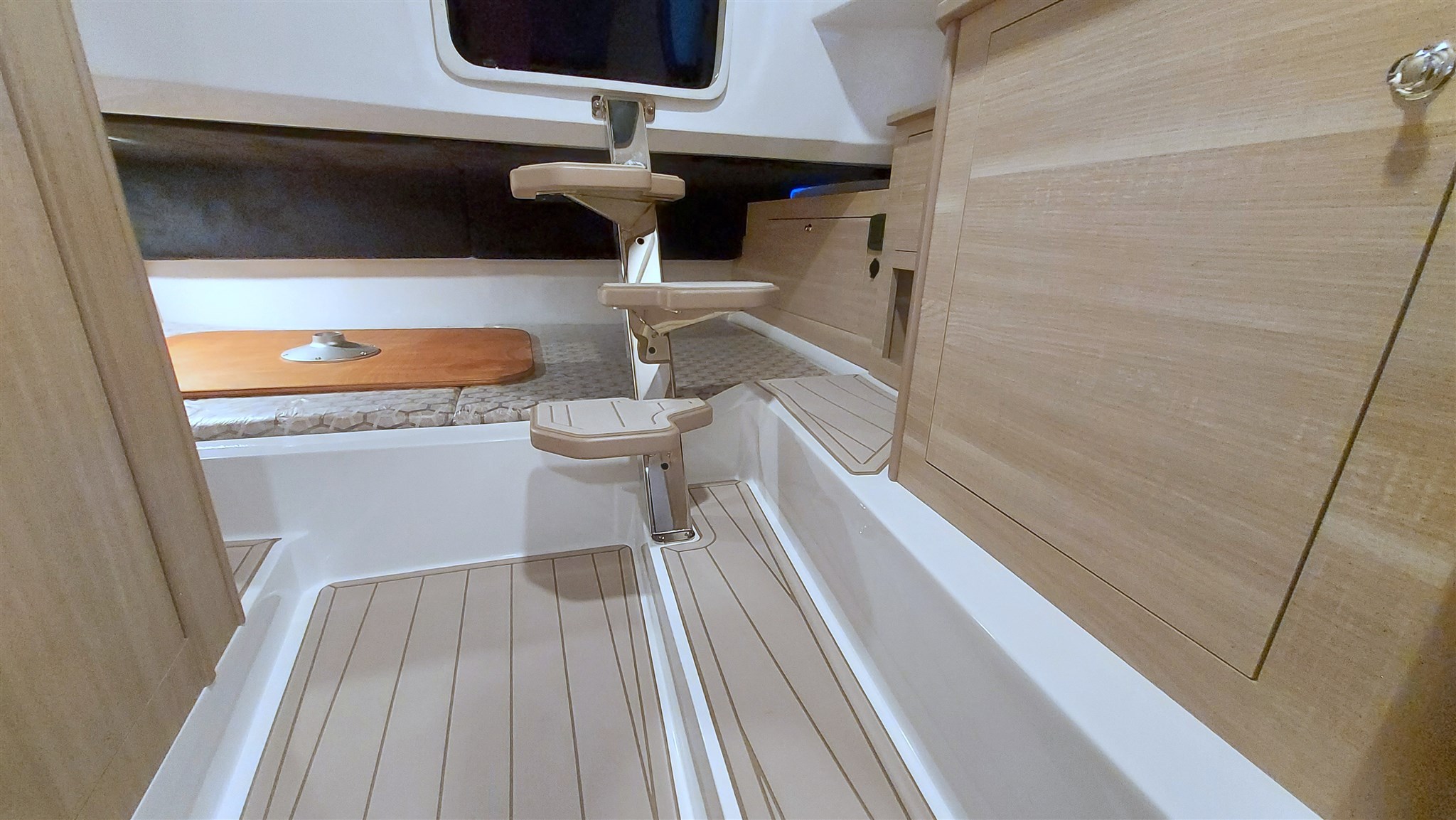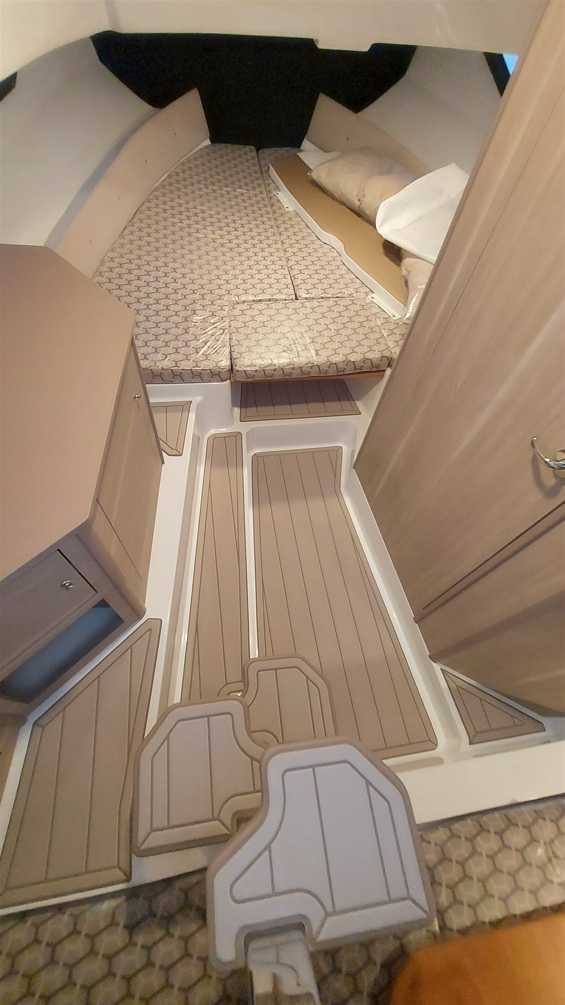 Dotata inoltre di impianto bagno separato con WC e macerator elettrici e serbatoio acque nere, plancette di poppa con scaletta a scomparsa, kit teli copertura console e sedute, mobile esterno wetbar con frigorifero inox Vitrifrigo con ghiacciaia, lavello, rubinetto, piano a induzione elettrico 220V, cuscineria esterna completa bicolore beige perfetta, sistema pali e tenda araba a poppa, verricello elettrico con ancora e catena e doppio comando ( prua e console ).